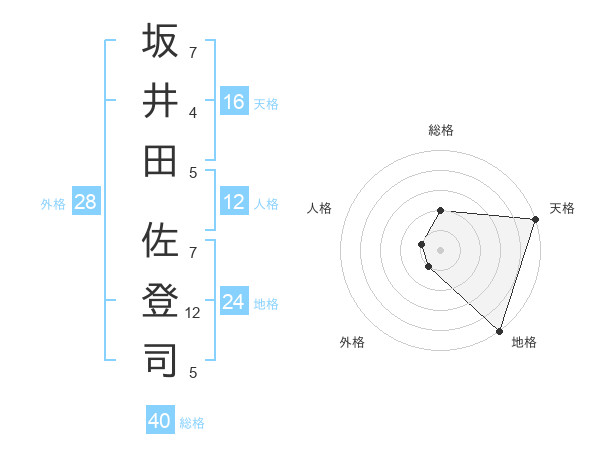 坂井田 佐登司さんを姓名の画数から五運を鑑定