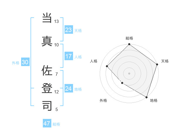 当真 佐登司さんの総格は47画の5点!