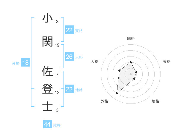 小関 佐登士さんの総格は44画の2点
