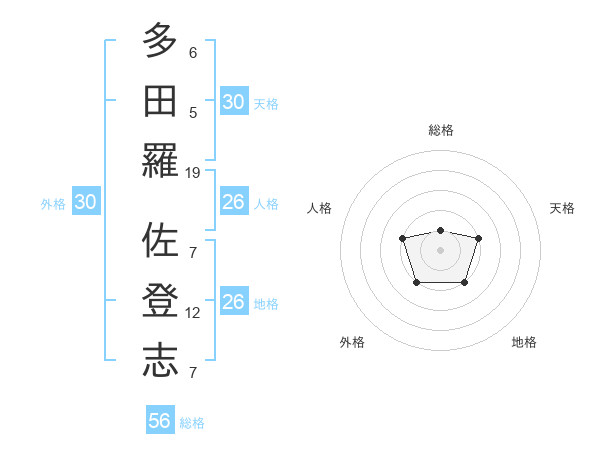 多田羅 佐登志さんの外格は30画の2点!