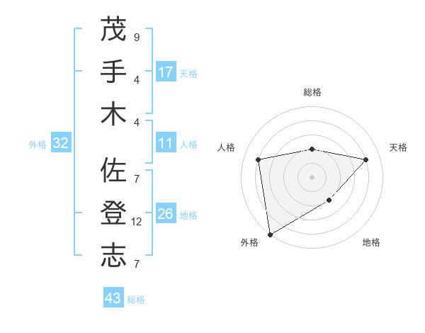 茂手木 佐登志さんを姓名の画数から五運を鑑定