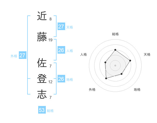 近藤 佐登志さんを姓名の画数から五運を鑑定