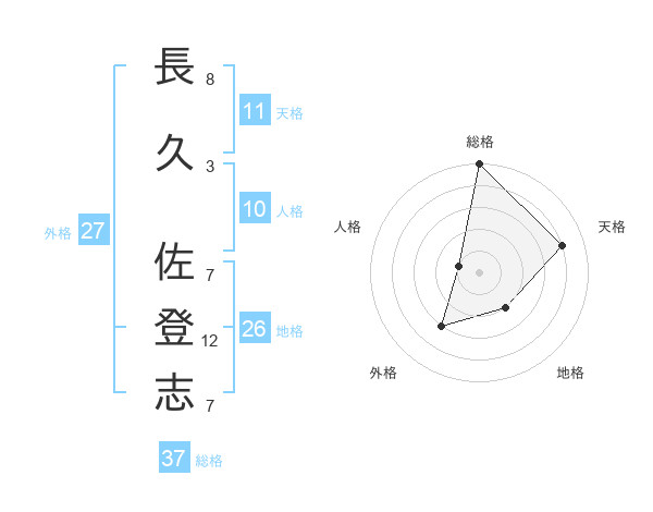 長久 佐登志さんを姓名の画数から五運を鑑定