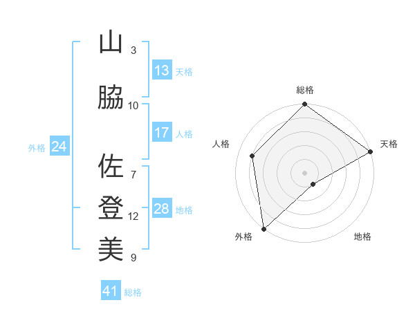 山脇 佐登美さんの総格は41画の5点!