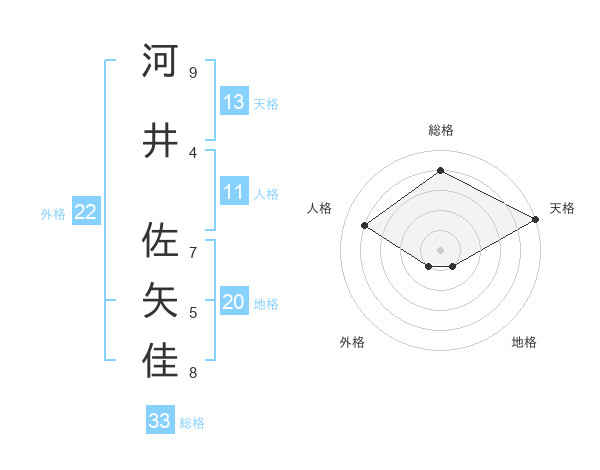 河井 佐矢佳さんを姓名の画数から五運を鑑定