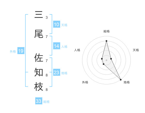 三尾 佐知枝さんを姓名の画数から五運を鑑定