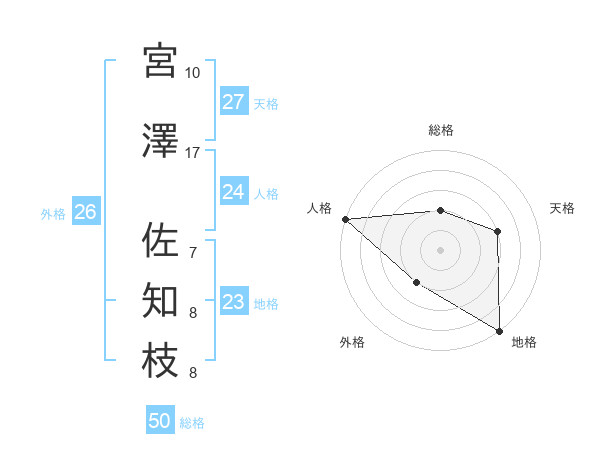宮澤 佐知枝さんを姓名の画数から五運を鑑定