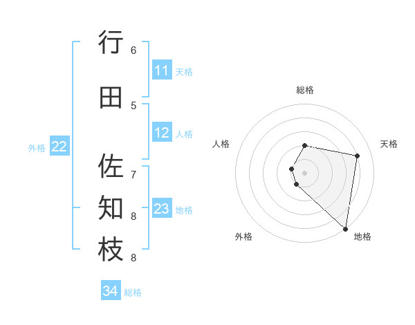 行田 佐知枝さんを姓名の画数から五運を鑑定