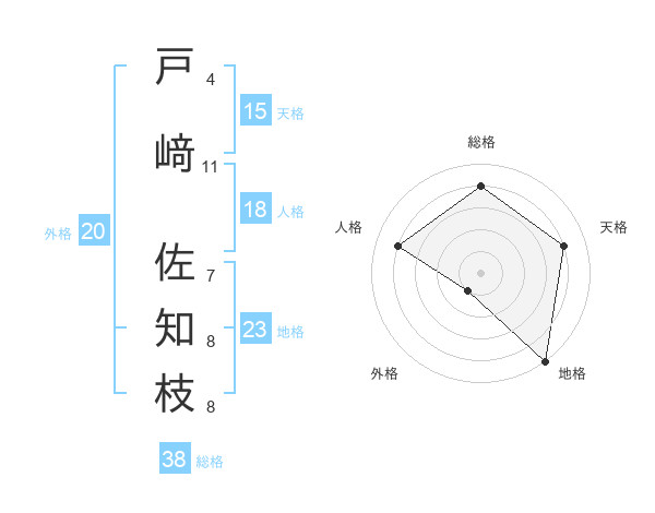 戸﨑 佐知枝さんの総格は38画の4点!