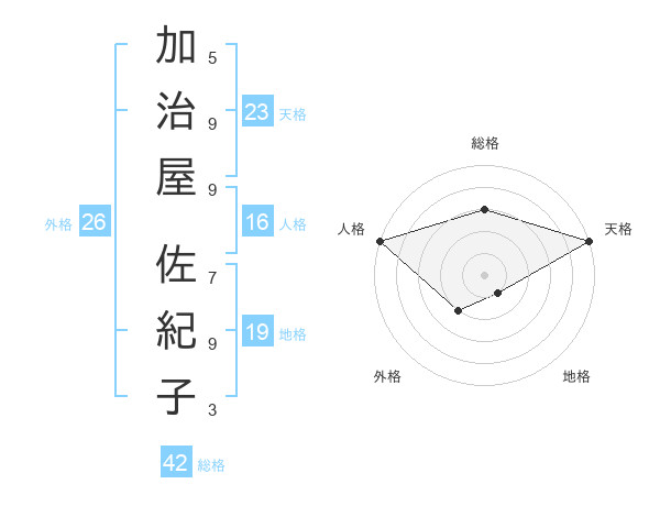 加治屋 佐紀子さんを姓名の画数から五運を鑑定