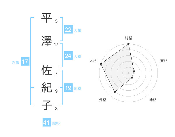 平澤 佐紀子さんを姓名の画数から五運を鑑定