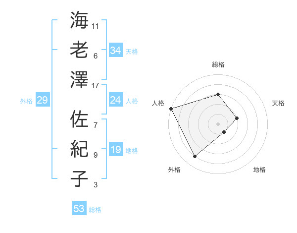 海老澤 佐紀子さんを姓名の画数から五運を鑑定