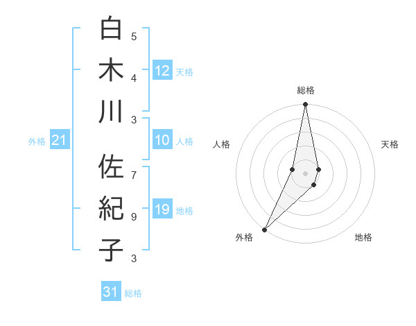 白木川 佐紀子さんの総格は31画の5点