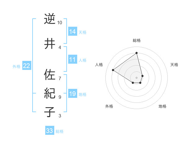 逆井 佐紀子さんを姓名の画数から五運を鑑定
