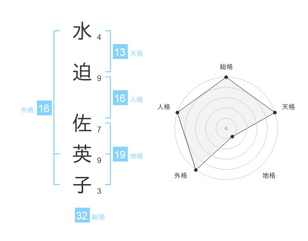 水迫 佐英子さんを姓名の画数から五運を鑑定