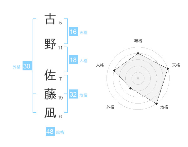 古野 佐藤凪さんを姓名の画数から五運を鑑定