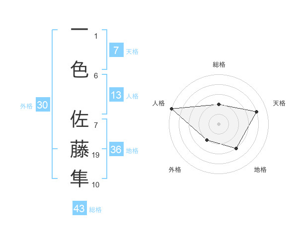 一色 佐藤隼さんの総格は43画の2点!
