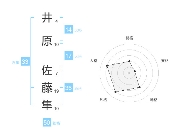 井原 佐藤隼さんの総格は50画の2点