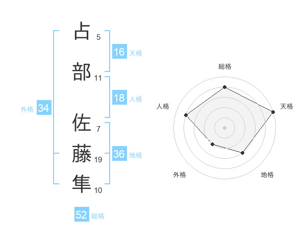 占部 佐藤隼さんを姓名の画数から五運を鑑定