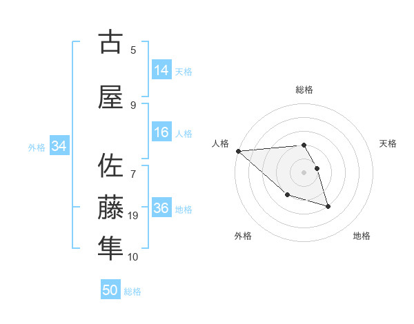古屋 佐藤隼さんの総格は50画の2点!