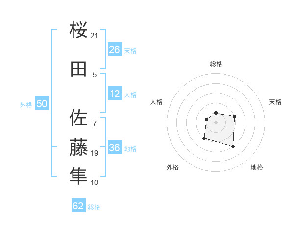 桜田 佐藤隼さんを姓名の画数から五運を鑑定