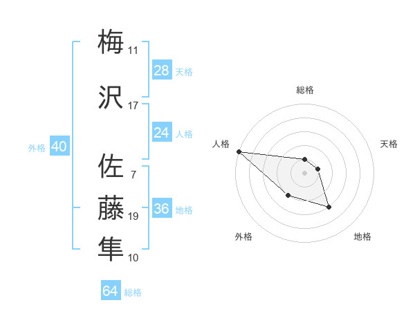 梅沢 佐藤隼さんを姓名の画数から五運を鑑定