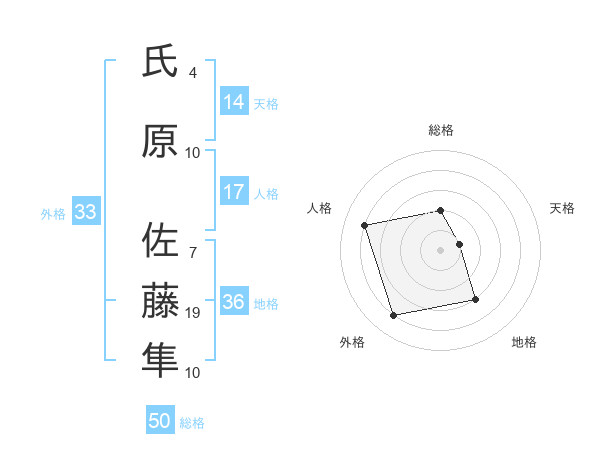 氏原 佐藤隼さんを姓名の画数から五運を鑑定