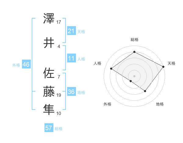 澤井 佐藤隼さんの総格は57画の4点!