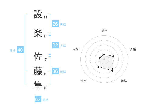 設楽 佐藤隼さんの総格は62画の1点!