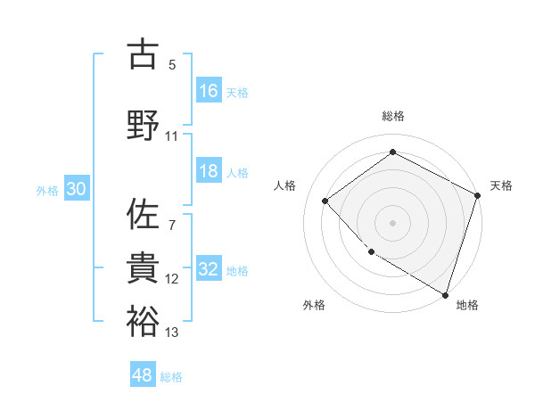 古野 佐貴裕さんを姓名の画数から五運を鑑定