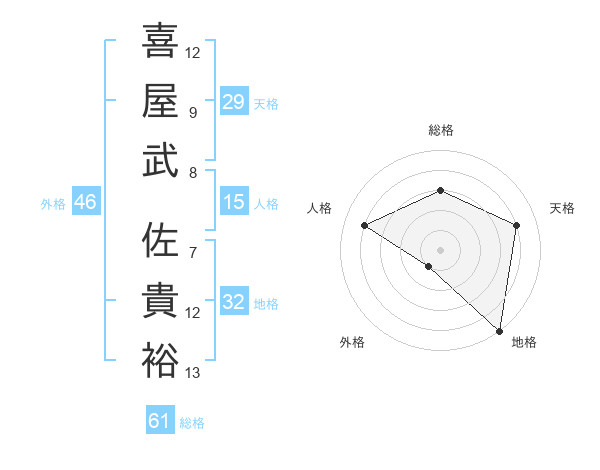 喜屋武 佐貴裕さんの人格は15画の4点!