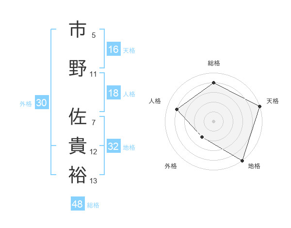 市野 佐貴裕さんの天格は16画の5点!
