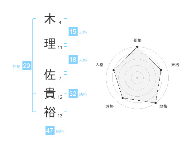 木理 佐貴裕さんを姓名の画数から五運を鑑定