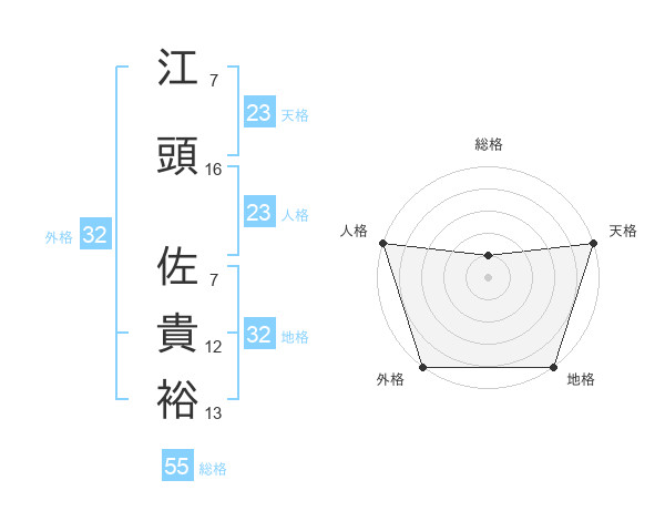 江頭 佐貴裕さんを姓名の画数から五運を鑑定