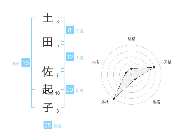 土田 佐起子さんを姓名の画数から五運を鑑定