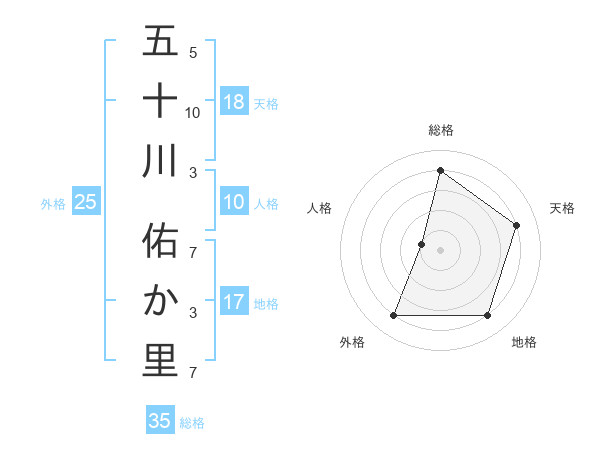 五十川 佑か里さんを姓名の画数から五運を鑑定