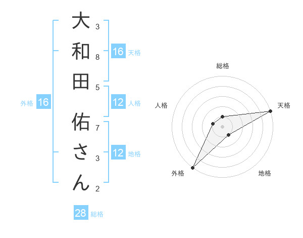 大和田 佑さんさんを姓名の画数から五運を鑑定