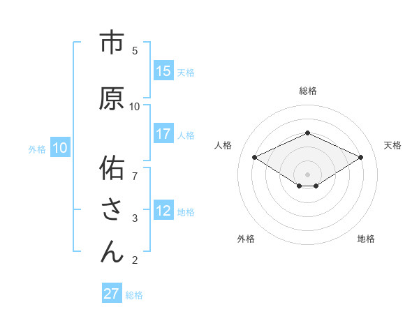 市原 佑さんさんを姓名の画数から五運を鑑定