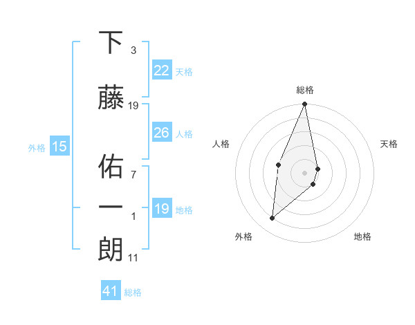 下藤 佑一朗さんを姓名の画数から五運を鑑定