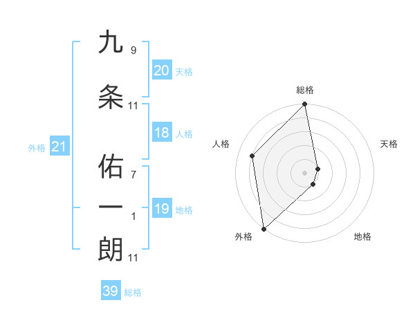九条 佑一朗さんを姓名の画数から五運を鑑定
