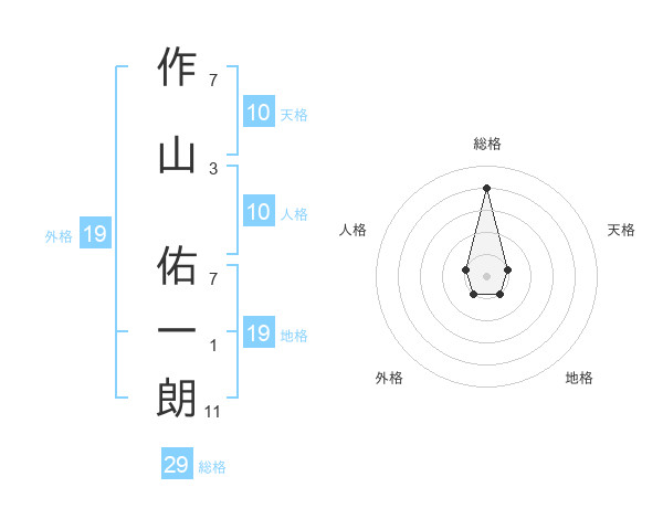作山 佑一朗さんの総格は29画の4点!