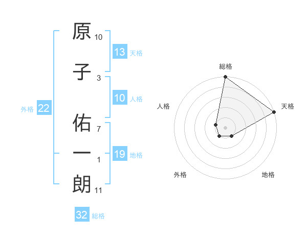 原子 佑一朗さんの総格は32画の5点!