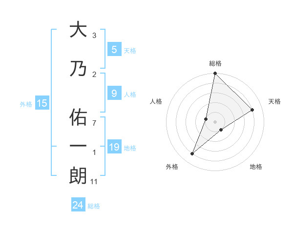 大乃 佑一朗さんの総格は24画の5点!