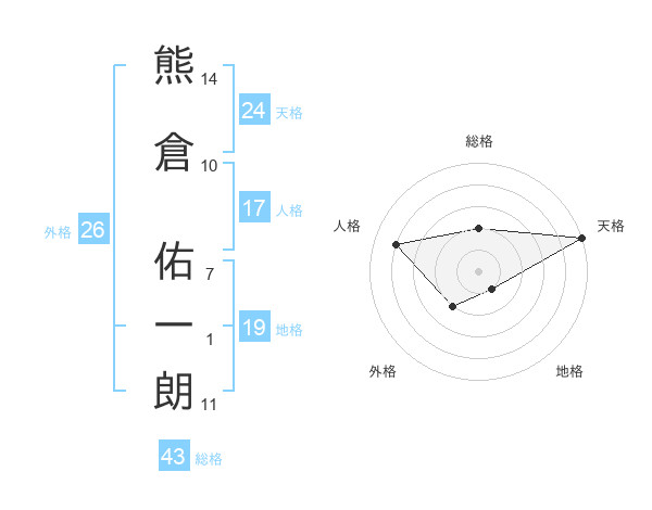 熊倉 佑一朗さんの天格は24画の5点!