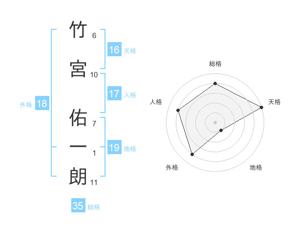 竹宮 佑一朗さんの天格は16画の5点