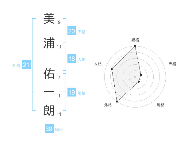 美浦 佑一朗さんを姓名の画数から五運を鑑定