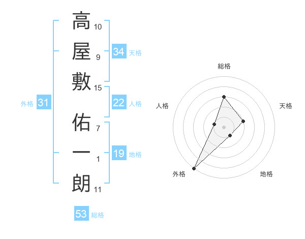 高屋敷 佑一朗さんの総格は53画の3点!