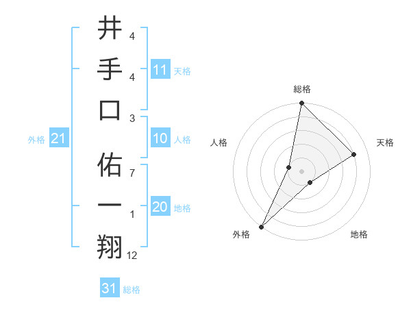 井手口 佑一翔さんを姓名の画数から五運を鑑定