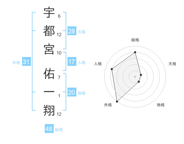 宇都宮 佑一翔さんを姓名の画数から五運を鑑定
