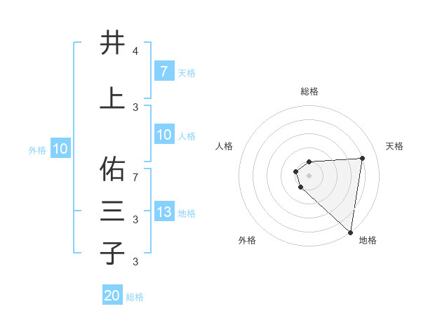 井上 佑三子さんを姓名の画数から五運を鑑定